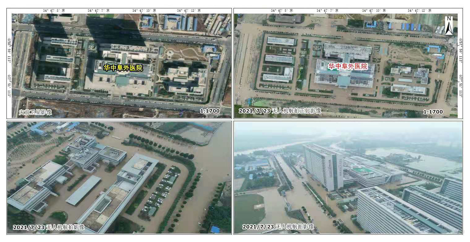 7月22日,第三組成員接到指揮中心要求航拍華中阜外醫(yī)院的支援請(qǐng)求后,半小時(shí)內(nèi)完成設(shè)備準(zhǔn)備、集結(jié)并出發(fā)趕赴現(xiàn)場。小分隊(duì)成員采用無人機(jī)監(jiān)測核心受災(zāi)區(qū)域,第一時(shí)間建立起救援一線與各級(jí)應(yīng)急指揮中心的視頻連線,實(shí)現(xiàn)了“動(dòng)態(tài)可視指揮、實(shí)時(shí)監(jiān)測預(yù)警”,為災(zāi)害處置工作提供了重要支撐。