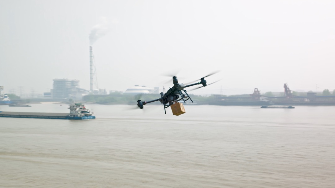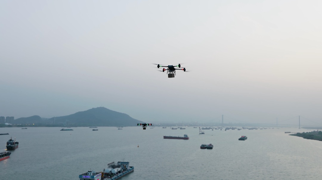在長江興隆洲水上服務區(qū)中段,大疆運載合作伙伴就承擔著為港口附近錨地的停泊船只提供生活物資的職責,所服務的錨地最遠距離 10 公里,過往主要通過補給船配送。引入 FlyCart 30 試運營后,實測在江面各種環(huán)境下均穩(wěn)定運行。無人機航線飛行速度可達 15 米/秒,原先通過補給船運輸一趟耗時半小時的作業(yè),無人機配送來回僅需 6 分鐘,既節(jié)約成本又提升了效率。