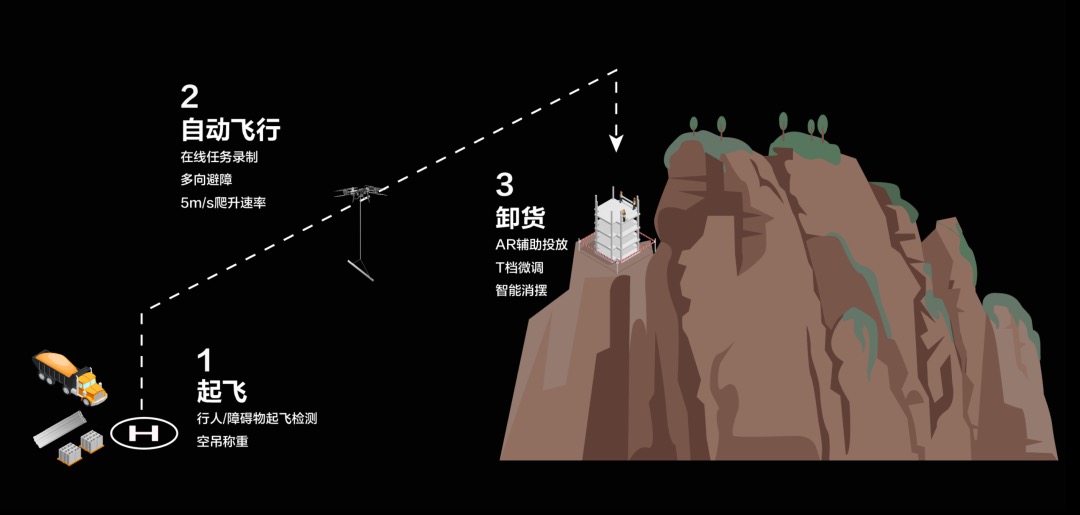 山區(qū)旅游景點眾多,為維持景區(qū)運營,需要高頻次、周期性地上下山運輸生活物資。使用 FlyCart 30 無人機,可在日常大規(guī)模運輸及大客流、雨雪天氣等運力需求突增的時候擴展運輸規(guī)模,緩解供需矛盾。