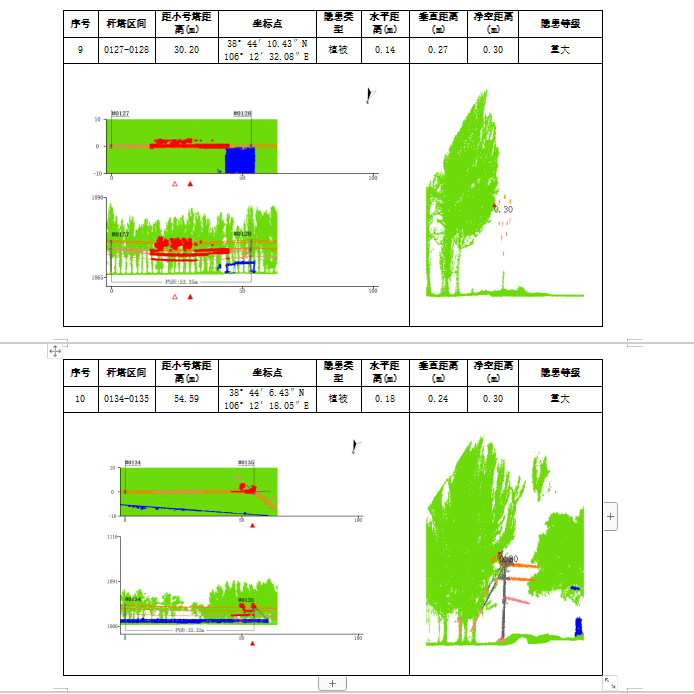 - 利用專業(yè)軟件對(duì)點(diǎn)云模型進(jìn)行凈空危險(xiǎn)點(diǎn)分析和交叉跨越分析,識(shí)別出潛在的安全隱患。