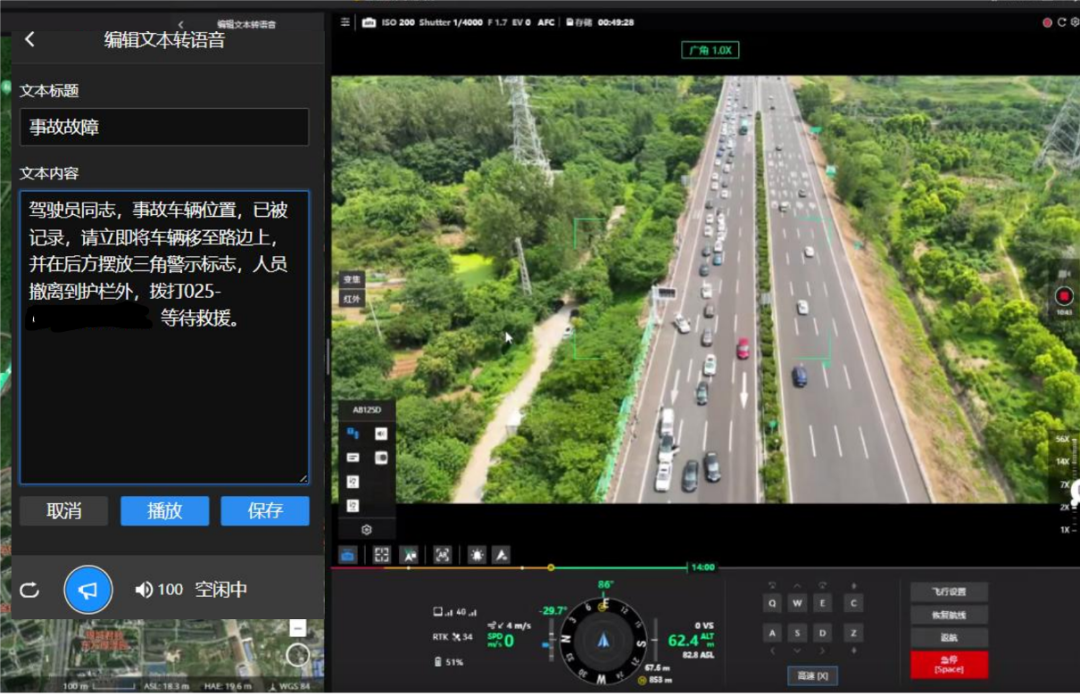 大疆機(jī)場(chǎng)還是高速公路的“安全員”和“監(jiān)管員”。高速涉路作業(yè)安全風(fēng)險(xiǎn)大,為了保障作業(yè)安全,常州管理處通過(guò)無(wú)人機(jī)空中監(jiān)測(cè)與道路監(jiān)控、路面流動(dòng)巡查相結(jié)合的方式,提升涉路作業(yè)現(xiàn)場(chǎng)全局態(tài)勢(shì)感知能力。