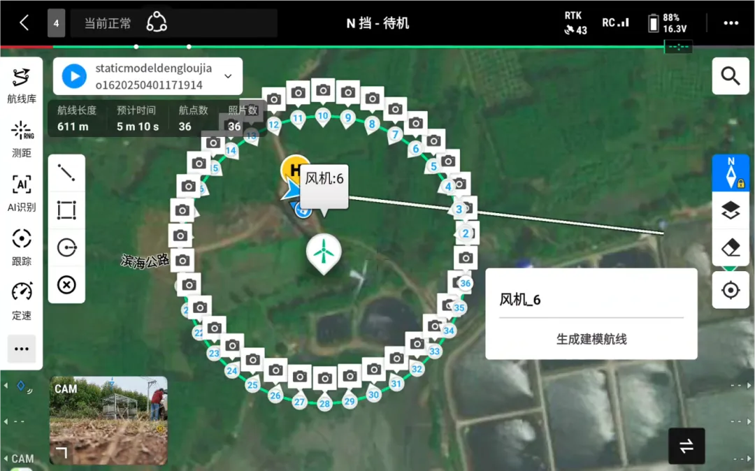 系統(tǒng)自動(dòng)生成建模航線(xiàn)后,Matrice 4 系列無(wú)人機(jī)自主執(zhí)行巡檢任務(wù),通過(guò)全方位環(huán)繞飛行的方式,精準(zhǔn)采集風(fēng)機(jī)多角度的高清影像數(shù)據(jù)。