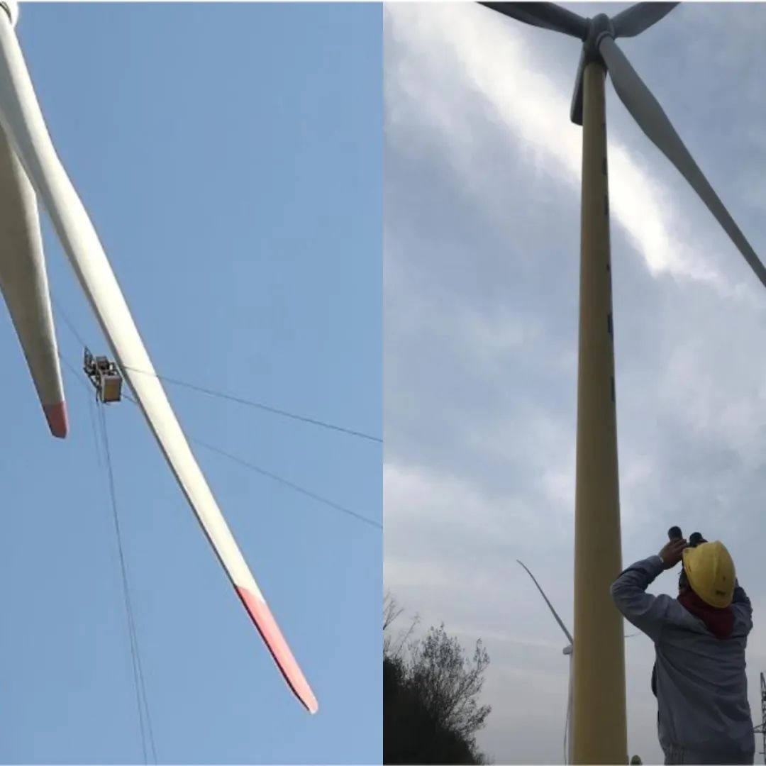 高空作業(yè)中,檢修人員需在搖晃的吊籃內(nèi)進(jìn)行檢測(cè),不僅存在墜落風(fēng)險(xiǎn),且在動(dòng)態(tài)環(huán)境下,難以對(duì)葉片表面進(jìn)行精準(zhǔn)檢查。地面望遠(yuǎn)鏡觀測(cè)則受限于距離和角度,極易遺漏葉片表面的細(xì)微裂紋等初期損傷。
