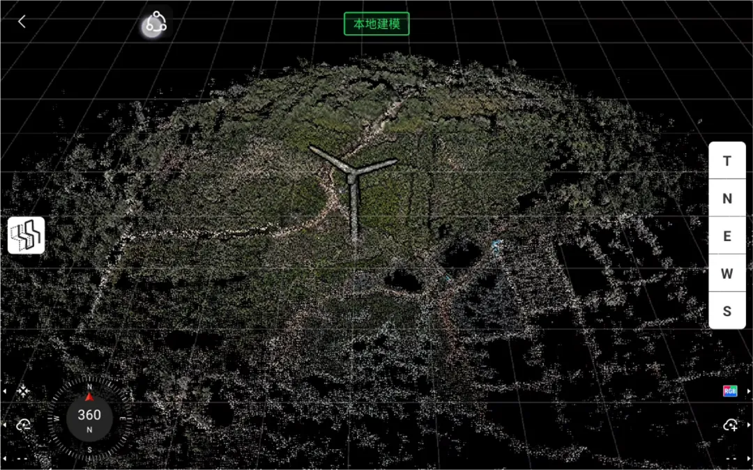 采集完成后,工作人員選擇“本地建模”,依托 Pilot 2 本地高性能計(jì)算能力,僅需 2 分鐘即可完成風(fēng)機(jī)三維模型的快速重建。