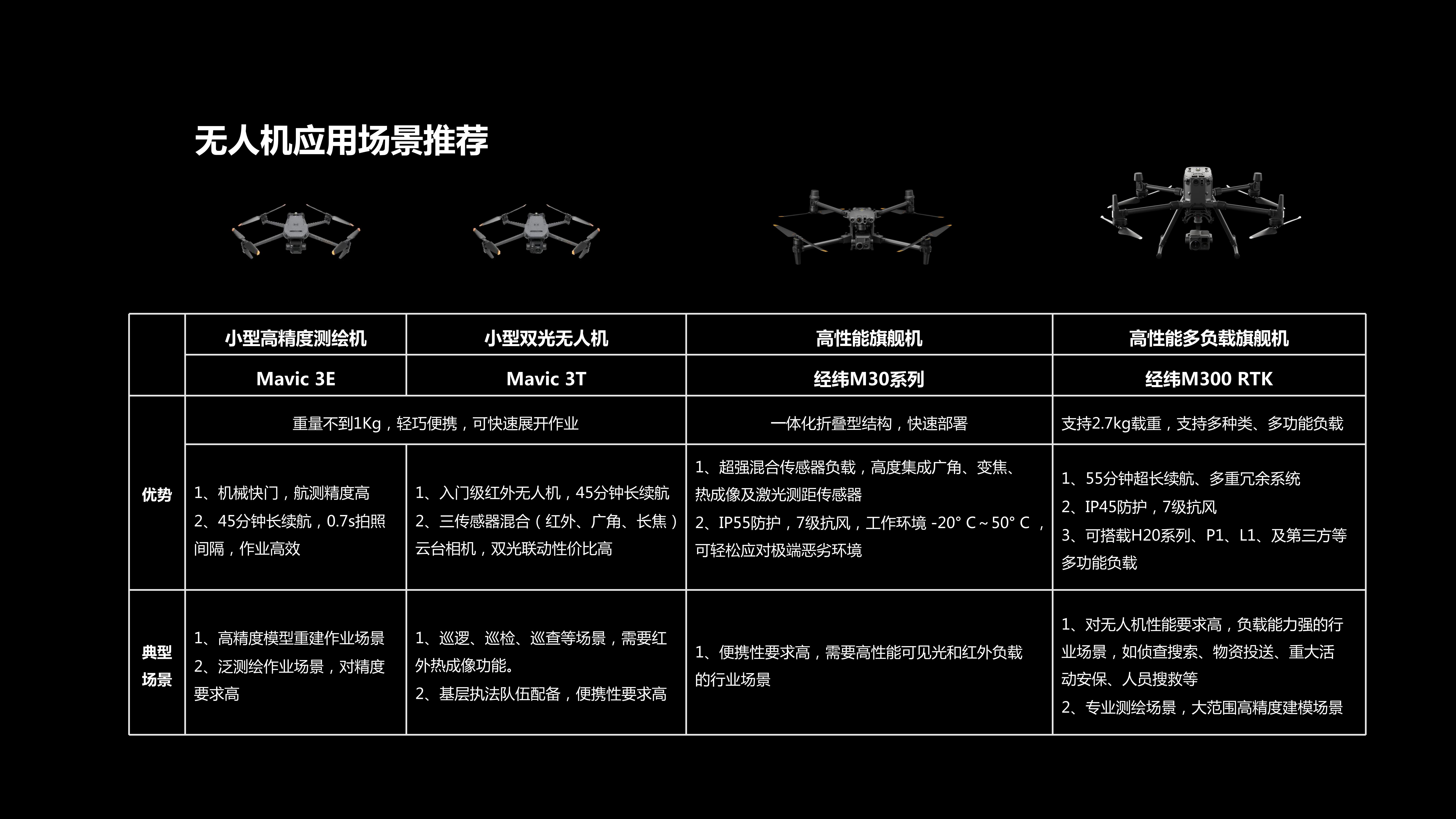 公司提供大疆(DJI)無人機(jī)、垂直起降固定翼、多功能負(fù)載、應(yīng)用平臺(tái)及反制監(jiān)測(cè)設(shè)備等。
